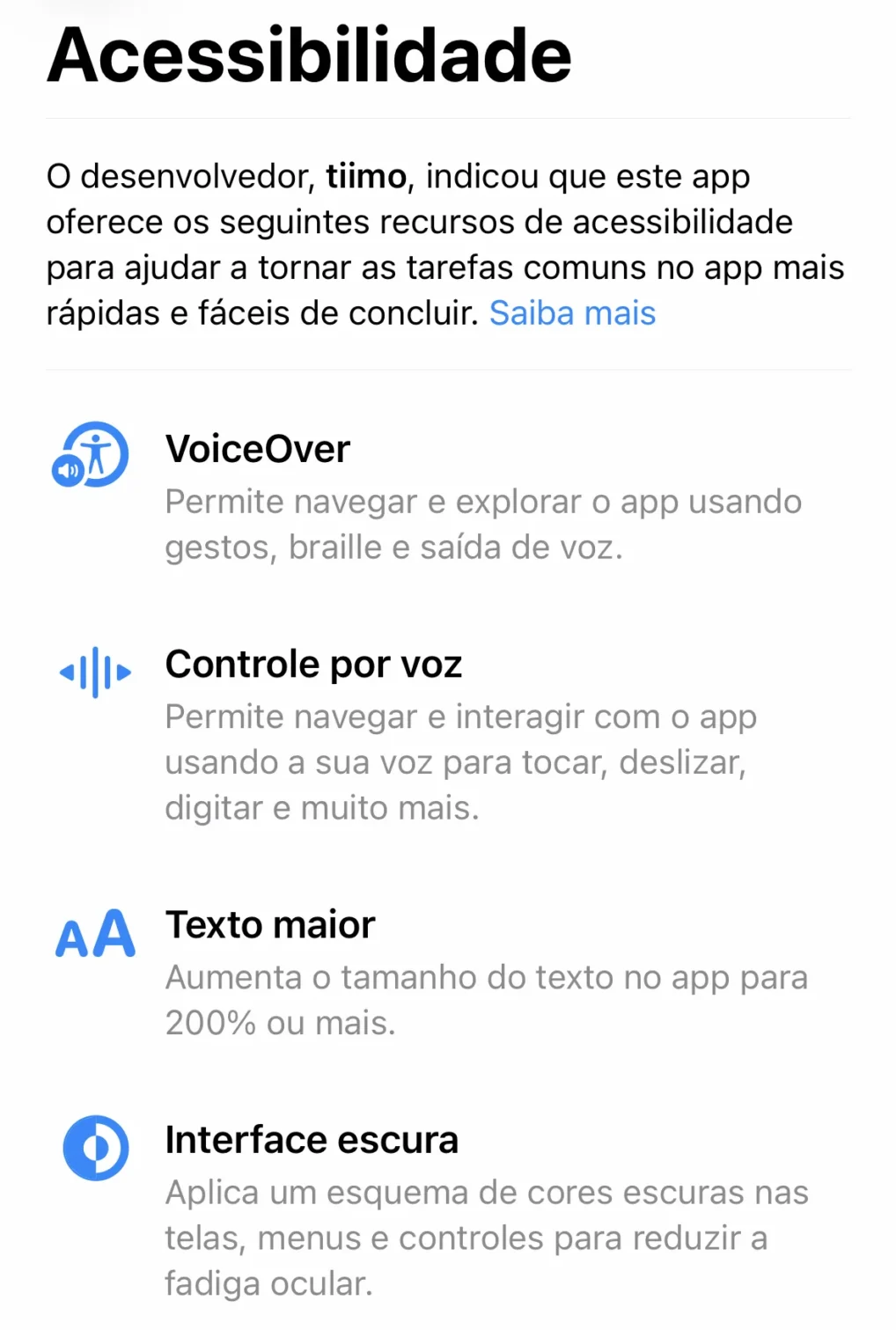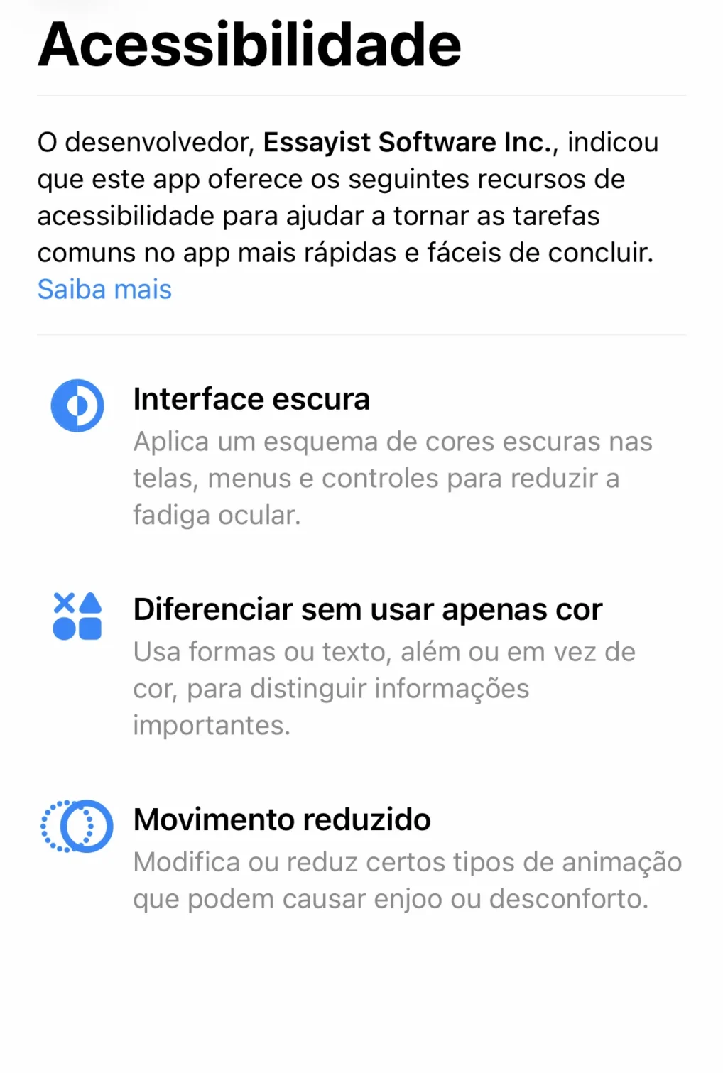 Categories Tecnologias SociaisPosted on 05/12/202505/12/2025Acessibilidade na App Store explicada por rótulos de acessibilidade • Os rótulos de acessibilidade revelam o nível de compatibilidade de cada app com recursos do iOS. • Essa informação reduz tentativas frustradas e apoia decisões informadas. • A iniciativa reforça a acessibilidade como parte essencial da experiência e do ecossistema de desenvolvimento. A experiência digital ainda impõe barreiras significativas para milhões de pessoas com deficiência. Para quem depende de leitor de tela, legendas, controles alternativos ou texto ampliado, descobrir se um aplicativo será utilizável costumava ser um processo de tentativa e erro. Essa combinação de incerteza e frustração afeta desde a comunicação até o acesso a serviços essenciais, que hoje estão concentrados no ambiente móvel. Para reduzir a incerteza que muitas pessoas enfrentam ao instalar novos aplicativos, a App Store passou a exibir os Accessibility Nutrition Labels. Eles atuam como um espaço dedicado que mostra como cada app se relaciona com os principais recursos de acessibilidade do iOS, oferecendo um panorama mais claro antes da instalação e contribuindo para uma experiência mais organizada e transparente. Esses rótulos aparecem na página de cada aplicativo e funcionam como um resumo sobre sua compatibilidade com as ferramentas de acessibilidade do sistema. Eles reúnem informações que antes ficavam espalhadas e ajudam o usuário a avaliar, de antemão, se o aplicativo atende às suas necessidades. Para preencher o rótulo, desenvolvedores avaliam diferentes aspectos da interface e do comportamento do app. Cada item está associado a um tipo de recurso oferecido pelo sistema e reflete uma necessidade concreta de uso. Entre os pontos observados estão: • VoiceOver: Indica se o aplicativo pode ser navegado com o leitor de tela do iOS, incluindo gestos, braille e saída de voz. Esse recurso é fundamental para pessoas cegas ou com baixa visão, que dependem de descrições claras e estruturadas para usar o app. • Controle por voz: Mostra se o app permite navegação e interação por comandos de voz, como tocar, deslizar, rolar ou digitar sem usar as mãos. Esse suporte é importante para pessoas com limitações motoras. • Texto maior: Informa se o aplicativo acompanha o ajuste de tamanho de texto feito pelo usuário no iOS, podendo chegar a 200 por cento ou mais. Isso garante leitura confortável para pessoas com baixa visão ou fadiga ocular. • Interface escura: Aponta se o app aplica um esquema de cores escuras no conteúdo, o que ajuda a reduzir o brilho da tela e a fadiga visual para diferentes perfis de usuários. • Diferenciar sem usar apenas cor: Indica se o aplicativo utiliza formas, texto ou padrões adicionais, e não somente cor, para comunicar informações importantes. Esse recurso apoia pessoas com daltonismo e outras condições de percepção de cor. • Contraste suficiente: Mostra se o texto, ícones e fundo mantêm contraste adequado, facilitando a leitura e a compreensão visual para quem precisa de maior nitidez. • Movimento reduzido: Verifica se o aplicativo respeita a preferência do sistema para diminuir ou eliminar animações que podem causar desconforto, enjoo ou distração. • Legendas: Indica se o app exibe legendas para diálogos e sons relevantes em vídeos ou áudios. Esse suporte é essencial para pessoas surdas ou com perda auditiva. • Descrições de áudio: Mostra se conteúdos audiovisuais oferecem audiodescrição sincronizada, permitindo que pessoas cegas acompanhem cenas, ações e informações visuais importantes. Esses dados aparecem na App Store dentro da área Acessibilidade de cada aplicativo e também podem ser usados como filtros de busca, reforçando sua importância dentro do ecossistema. Além disso, a visibilidade pública dos rótulos estimula desenvolvedores a integrar práticas de acessibilidade desde etapas iniciais do processo de criação. Como pessoas com deficiência utilizam o iPhone Fora da App Store, o iPhone reúne um conjunto amplo de recursos que fazem parte da rotina de muitos usuários com deficiência. Pessoas cegas ou com baixa visão utilizam VoiceOver, Zoom, Lupa, audiodescrição e suporte a Braille para navegar, ler conteúdos e interagir com aplicativos. Usuários surdos contam com Live Captions, reconhecimento de sons e integração com aparelhos auditivos, que ampliam o acesso a chamadas, vídeos e notificações. Pessoas com deficiência física podem operar o aparelho com AssistiveTouch, Voice Control ou Switch Control, que permitem controles alternativos e reduzem a necessidade de gestos complexos. Já usuários com deficiência intelectual, autismo ou TDAH encontram no Assistive Access e no Acesso Guiado uma interface mais simples e previsível, o que facilita o uso e reduz estímulos sensoriais. Esses recursos consolidam o iPhone como ferramenta importante de autonomia. No entanto, a experiência final depende de como cada aplicativo implementa acessibilidade. Ainda existem apps que não se adaptam ao texto ampliado, não funcionam adequadamente com leitores de tela ou apresentam barreiras no acesso a legendas. Em situações como essas, a tecnologia oferecida pelo sistema não se converte em usabilidade real. Os Accessibility Nutrition Labels ajudam a reduzir esse descompasso ao tornar visíveis as possibilidades e limitações de cada aplicativo. Eles aproximam o potencial do iOS da prática cotidiana e apoiam a construção de um ecossistema mais previsível e inclusivo para pessoas com diferentes necessidades. A criação dos rótulos não resolve todos os desafios da acessibilidade digital, mas representa um avanço importante em termos de transparência. Ao incluir essas informações na vitrine da App Store, a iniciativa reforça a ideia de que acessibilidade é parte estrutural da experiência, e não um detalhe técnico isolado. Co